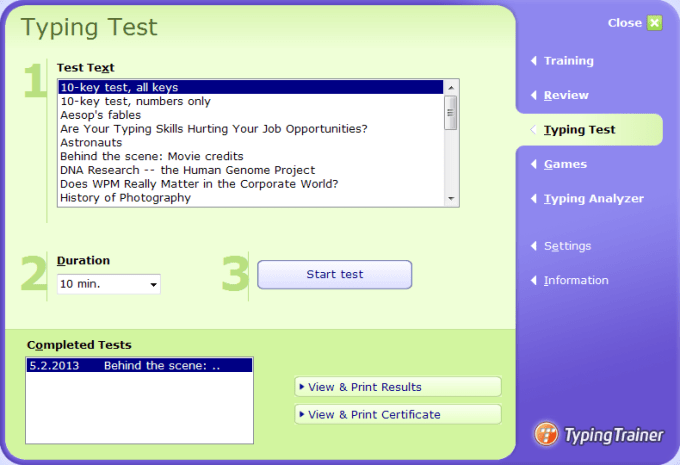Typing Trainer is a full-featured typing tester and trainer for Windows.
